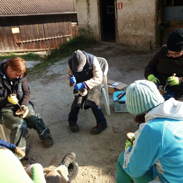 Ich biete Schulungen und Seminare an, damit Pferdebesitzer selbst Verantwortung für die Hufpflege übernehmen können. Bearbeitet werden anfangs Tothufe, damit man in Ruhe üben kann.